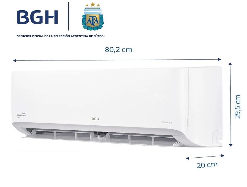 Aire Acondicionado Split Frío/Calor BGH Silent Air Inverter BSI35WCLW Eficiencia, confort y tecnología en cada estación El BGH Silent Air Inverter BSI35WCLW es la solución ideal para climatizar tu hogar o espacio de trabajo con máxima eficiencia y rendimiento. Gracias a su tecnología Inverter, este equipo ajusta de forma inteligente la velocidad del compresor, garantizando un ahorro energético significativo, una temperatura estable sin cambios bruscos y un funcionamiento más silencioso. Rendimiento superior en frío y calor Este aire acondicionado ofrece una capacidad de refrigeración de 3500W y 3650W en calefacción, adaptándose a todas las estaciones del año. Su clasificación energética A++ en frío y A en calor asegura un consumo eficiente, cuidando tu economía y el medio ambiente. Mayor confort con funciones avanzadas Modo Turbo: potencia máxima para enfriar o calentar en menos tiempo. Función Sleep: ajuste automático de temperatura para un descanso óptimo. Deshumidificación: reduce la humedad ambiental y mejora la calidad del aire. Deflector de aire móvil y control de flujo vertical, que distribuyen el aire de manera uniforme en todo el ambiente. Autolimpiante: evita la acumulación de humedad y bacterias en el equipo. Aire más puro con filtro antibacterias El filtro de alta eficiencia atrapa polvo, polen y otras partículas contaminantes, proporcionando un ambiente más saludable para vos y tu familia. Diseño compacto y silencioso Con un nivel de ruido interior de solo 35,5 dB en su configuración más baja, el BGH Silent Air Inverter asegura una climatización cómoda sin interrupciones. Su diseño moderno y compacto facilita la instalación en cualquier espacio. Detalles técnicos destacados Potencia de refrigeración: 1090W / Potencia de calefacción: 1010W Gas refrigerante R32: más eficiente y ecológico Control remoto con display LCD para un manejo intuitivo Timer programable para optimizar el consumo Dimensiones evaporadora: 80,2x20x29,5 cm | Peso neto: 8,2 kg Dimensiones condensadora: 68x24,8x54,2 cm | Peso neto: 20 kg Se debe revisar en el manual la información para la instalación. Garantía de fábrica: 12 meses