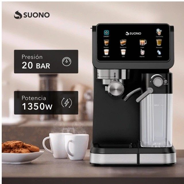 Descubrí una nueva experiencia cafetera con la Cafetera Espresso Automática Suono, diseñada para los verdaderos amantes del café. Con 20 bares de presión, tanque de leche con limpieza automática y compatibilidad con cápsulas, esta cafetera combina potencia, practicidad y elegancia para que disfrutes del mejor espresso, cappuccino o latte en casa.