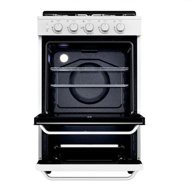 Funciona a multigas, cuenta con encendido automático y luz en el horno, lo que facilita el uso diario. Su color blanco clásico combina con todo y aporta limpieza visual al ambiente.