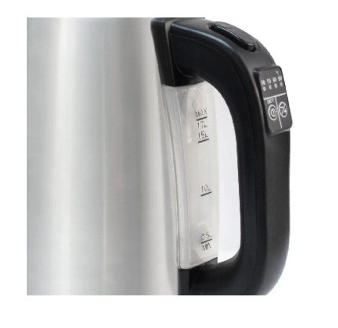 Jarra eléctrica de 1,7 L con corte mate y selector de temperaturas. Permite seleccionar la temperatura ideal para cada infusión, manteniendo el agua caliente con precisión. Cuenta con visor medidor transparente, indicador luminoso de encendido y base giratoria de 360° con espacio guarda cable que facilita su uso y guardado. - Capacidad: 1.7 Litros. - Potencia: 2200 W. - 4 temperaturas preseteadas: 50°, 70°, 80°, 90°, 100°C. - Cuerpo de acero inoxidable. - Botón de apertura de tapa.