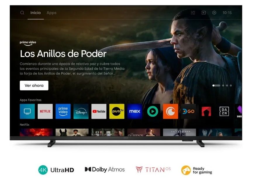 Con el sistema operativo TITAN OS, disfrutarás de una interfaz rápida e intuitiva, con acceso directo a tus plataformas favoritas como Netflix, YouTube, Prime Video y YouTube Music. Además, cuenta con Wi-Fi integrado y Bluetooth, lo que te permite conectar dispositivos fácilmente sin cables.